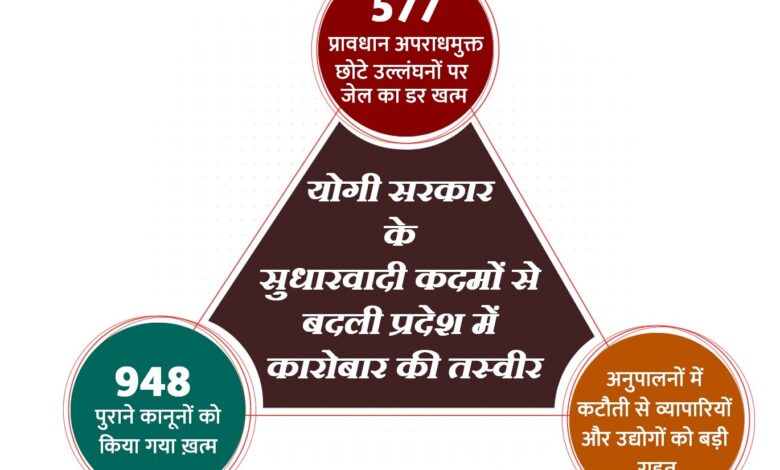 लखनऊ। उत्तर प्रदेश में किए गए व्यापक सुधारों का असर केवल नीतिगत दस्तावेजों तक सीमित नहीं रहा, बल्कि यह जमीनी स्तर पर साफ दिखाई देने लगा है। प्रशासनिक ढांचे में बदलाव के साथ ही सरकारी मशीनरी की कार्यशैली में भी परिवर्तन आया है। जहां पहले फाइलों की गति सुस्त रहती थी, वहीं अब समयबद्ध निस्तारण सुनिश्चित है। योगी सरकार के नियामक सुधारों ने वर्षों से चली आ रही जटिलताओं को तोड़ते हुए प्रदेश की कार्यशैली में आमूलचूल परिवर्तन किया है। 577 प्रावधानों को अपराधमुक्त करने सहित बड़ी संख्या में अनुपालनों में कटौती, 948 पुराने कानूनों के खात्मे और ट्रेड लाइसेंस जैसी बाध्यताओं को समाप्त कर उत्तर प्रदेश अब उद्योग-व्यापार के लिए ‘ड्रीम डेस्टिनेशन’ है।