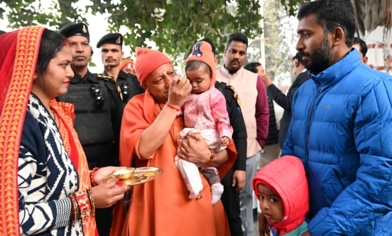 मंदिर परिसर में सीएम ने बच्चों पर लुटाया प्यार, कराया अन्नप्राशन