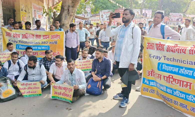 एक्सरे टेक्नीशियन अभ्यर्थियों ने किया प्रदर्शन
